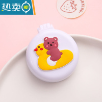 敬平梳子镜子一体便携蓝色油画月亮便携折叠翻盖式随身梳镜两用化妆镜 黄鸭小熊-白底便携式用镜