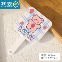 敬平少女心手持小号化妆镜学生宿舍便携随身携带小镜子梳子二合一套装 格子小熊便携式用镜