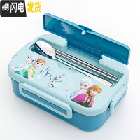 三维工匠304不锈钢分隔饭盒卡通可爱小学生分格餐盘儿童防烫带盖便当餐盒 二格蓝冰雪款(1200)+勺筷子