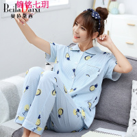 锦铭七玥贝拉黛西2018菠萝睡衣女夏开衫短袖长裤棉薄款卡通居服套装