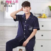 锦铭七玥贝拉黛西2018春夏新款睡衣男短袖简约时尚翻领针织棉居服套装