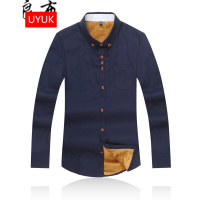 UYUK秋冬季保暖衬衫修身男士加绒加厚纯色商务免烫职业正装长袖衬衣