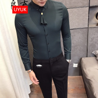 UYUK2017秋冬装新款发型师个性挂饰衬衫韩版男士纯色百搭修身工作服潮