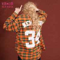 妖精的口袋-安妮与绿墙冬装2017新印花格纹宽松中长款衬衫女
