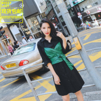2017秋季新款欧美修身时髦裹胸拼皮衬衫裙女假两件连衣裙潮