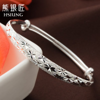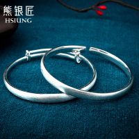 熊银匠银手镯S999纯银手镯女韩版拉丝光面银镯子纯银女送女友闺蜜