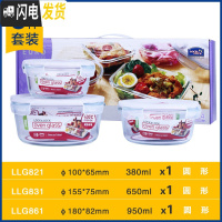 三维工匠耐热玻璃保鲜盒套装冰箱收纳盒礼盒装微波炉玻璃碗便当盒 [圆形]3件套