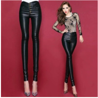 顺崇2018春春高腰排扣弹力修身显瘦PU皮女外穿铅笔裤哑光小脚打底长裤1969