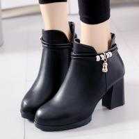 厚底短靴秋冬女鞋加绒加厚新款舒适防滑软底粗跟圆头短靴子