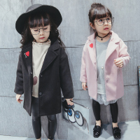 娉语女童毛呢外套加厚加棉秋冬装2018儿童爱心西装领小女孩呢子大衣潮