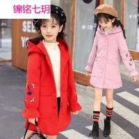锦铭七玥女童毛呢外套2018新款女孩加厚童装秋冬装中大儿童毛呢子连帽大衣