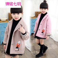 锦铭七玥女童毛呢外套2017新款小女孩加厚童装冬装韩版中大儿童毛呢子大衣