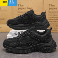 聚范纯黑色男鞋夏季2024新款工地工作防滑劳保鞋网面休闲运动老爹潮鞋