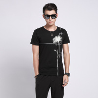 夏季新T恤男装圆领上衣修身烫钻小熊丝光棉黑色衣服潮ins
