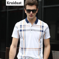 免费试穿 夏季新款桑蚕丝短袖t恤男翻领中年醋酸半袖体恤商务休闲格子Polo衫可批发定制工作服加肥加大码男装特价新款