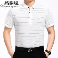 情吻缘商务休闲男装 2018夏季新款男士短袖T恤翻领条纹半袖打底衫上衣