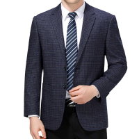 新款牌男士单件西服商务休闲中年格子秋季羊毛呢西装外套深灰色