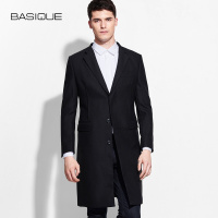 秋装新款男士中长款毛呢大衣外套立领翻领西服领黑色
