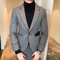 秋冬休闲羊毛西装男潮流修身毛呢小西装男士羊毛西服外套