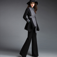 秋冬欧美毛呢风衣外套女秋装时尚女士修身职业套装中长款潮