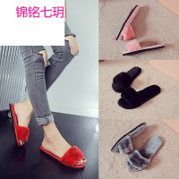 锦铭七玥17春款毛绒一字拖耐磨防滑毛毛拖鞋女室内拖鞋厂