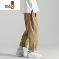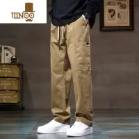 YANXU卡其色裤子男款宽松工装裤韩版潮流九分裤直筒阔腿休闲长裤