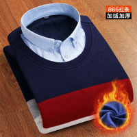 冬季新款加绒男士针织衫假两件中年爸爸装加厚保暖长袖打底衫