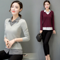麻花假两件衬衫毛衣女士学院风秋季小众宽松针织衫女装长袖上衣潮