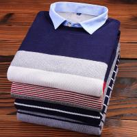 男士假两件保暖衬衫男加绒加厚长袖衬衫领套头针织衫毛衣保暖衬衣