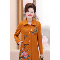 中老年女装复古刺绣中长款毛呢外套中年妈妈装风衣呢子加绒大衣