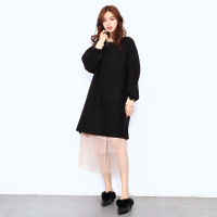 2018秋冬新款韩版加绒加厚宽松卫衣灯笼袖毛呢连衣裙CYLLMX