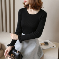 秋新款女装加厚加绒毛衣纯色短款长袖打底衫韩版修身套头针织衫