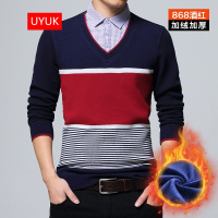 UYUK韩版秋冬季假两件男士衬衫领毛衣男潮流加绒加厚衬衣领针织衫男潮