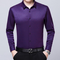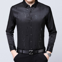 冬季新款加绒男士衬衣高弹力条纹无痕舒适保暖打底爸爸衬衫男