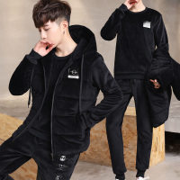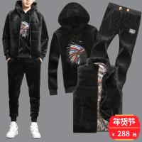 金丝绒运动套装男春秋冬季三件套休闲套装男卫衣加绒加厚全套服装