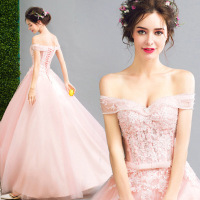 2018新款致典范柔粉色蕾丝新娘婚纱敬酒服晚宴年会演出礼服202萝莉粉
