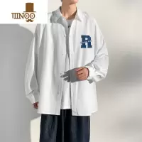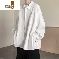 YANXU白色衬衫男生日系简约休闲长袖衬衣初秋纯白潮流尖领工装外套
