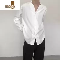 YANXU感无领工作长袖衬衫男ins潮流轻熟风垂感衬衣痞帅V领宽松