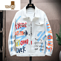 YANXU青少年牛仔夹克长袖衬衫男生涂鸦工装衬衣学生休闲港风外套
