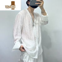 YANXU暗黑系简约宽松镂空垂感设计师V领宽松痞帅衬衫男轻薄衬衣潮