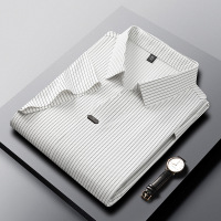 春秋夏季白色轻便透气精纺细斜长袖衬衣(男士)G-002常规款长袖衬衣可定制