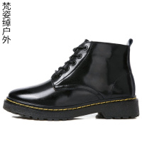2017秋季新款韩版黑色女皮鞋系带马丁靴女平底短靴厚底学生女靴子