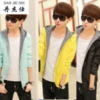 丹杰仕2016货到付款夏季薄夹克男装 潮男韩版修身连帽防晒服男青少年防晒衣 男生外套薄夹克小咖秀百搭潮
