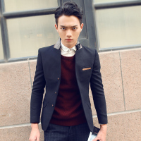 啄木鸟春季新款毛呢大衣爸爸立领中山装婚宴外套中年男士夹克衫C