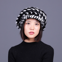 新款皮草帽子女士水貂毛编织帽子贝雷帽裘皮帽鸭舌帽白色可调节