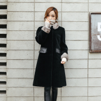 旗下羊剪绒皮草大衣女中长款羊羔毛外套海宁新款水貂皮毛一体修身黑色