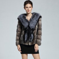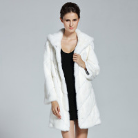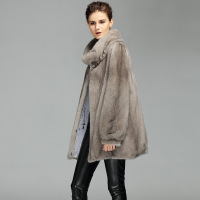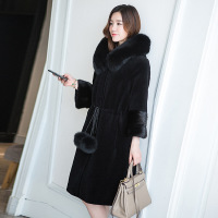 2018新款海宁水貂皮毛一体中长款皮草外套女装整貂皮大衣连帽裘皮