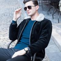 旗下冬新款水貂羊剪绒大衣女长款皮草连帽外套77黑色
