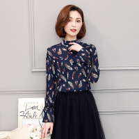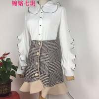 2017新款瞌睡兔欧式复古木耳边小翅膀雪纺衫女秋装2017新款上衣甜美衬衫