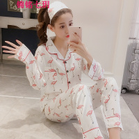 锦铭七玥2018春夏新款女士仿真丝长袖睡衣可爱甜美衬衫领丝绸欧美薄款睡衣